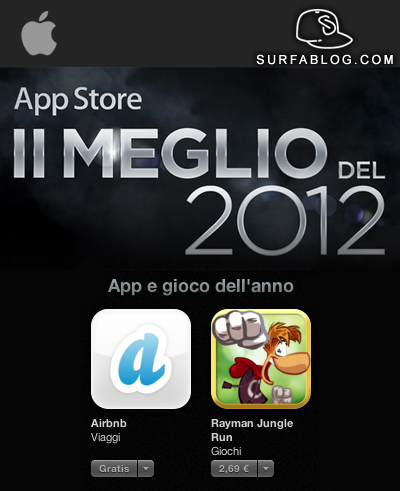 Apple Store ha dedicato la sua homepage al "Rewind 2012", ovvero un resoconto di fine anno che elegge la miglior app ed il miglior gioco dell'anno. La migliore app dell'anno è stata "Airbnb" (con cui è possibile prenotare un alloggio direttamente da iPhone) mentre il miglior gioco è stato "Rayman Jungle Run (che consiste nel direzionare il nostro personaggio che corre automaticamente, senza farlo mai sbattere e fermare). L'applicazione più acquistata è stata Whatsapp, la più scaricata gratuitamente è stata YouTube e la più redditizia è sempre Whatsapp.