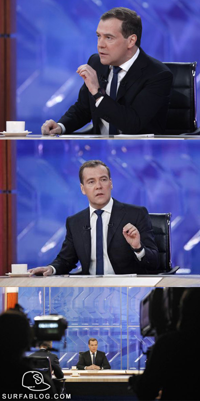 Mentre il ministro della protezione civile russo, Vladimir Puchkov, rassicurava la sua nazione che non ci sarebbe stata nessuna apocalisse (per saperne di più clicca qui), durante un dialogo fuori onda con alcuni giornalisti durante le pause di interviste rilasciate a 5 televisioni, il premier (ed ex presidente) russo, Dmitri Medvedev, si è lasciato scappare delle informazioni segretissime, dichiarando "Gli extraterrestri sono già tra noi da un bel pò. Non posso dirvi quanti sono, ma non sono parecchi. Non possiamo dirlo perchè altrimenti scoppierebbe il panico, però se guardate un film come "Men In Black", ecco, la realtà è proprio così." Alcuni però sul web non hanno preso Medvedev sul serio, perchè spesso è stato trovato ubriaco di vodka.