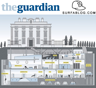 La nuova mania dei billionaires londinesi è quella di costruire intere case sotterranee. A dare la notizia è il The Guardian, che ha comunicato che negli ultimi 5 anni c'è stato un boom di costruzione di bunker lussuosi nella capitale inglese. Eccovi nell'immagine il progetto dell'ultimo caso: l'abitazione del canadese David Graham, il quale ha fatto costruire una casa sotterranea di 4 piani con: piscina, idromassaggio, sauna, 15 camere da letto, 7 bagni, sala da ballo ed un parcheggio.