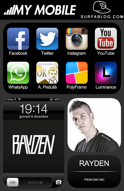 Eccovi il post numero 8 di My Mobile, la nuova categoria del SURFAblog, in cui si vedono le 8 applicazioni più usate/preferite e lo sfondo del telefono di ogni personaggio. Oggi troviamo Rayden dei One Mic.