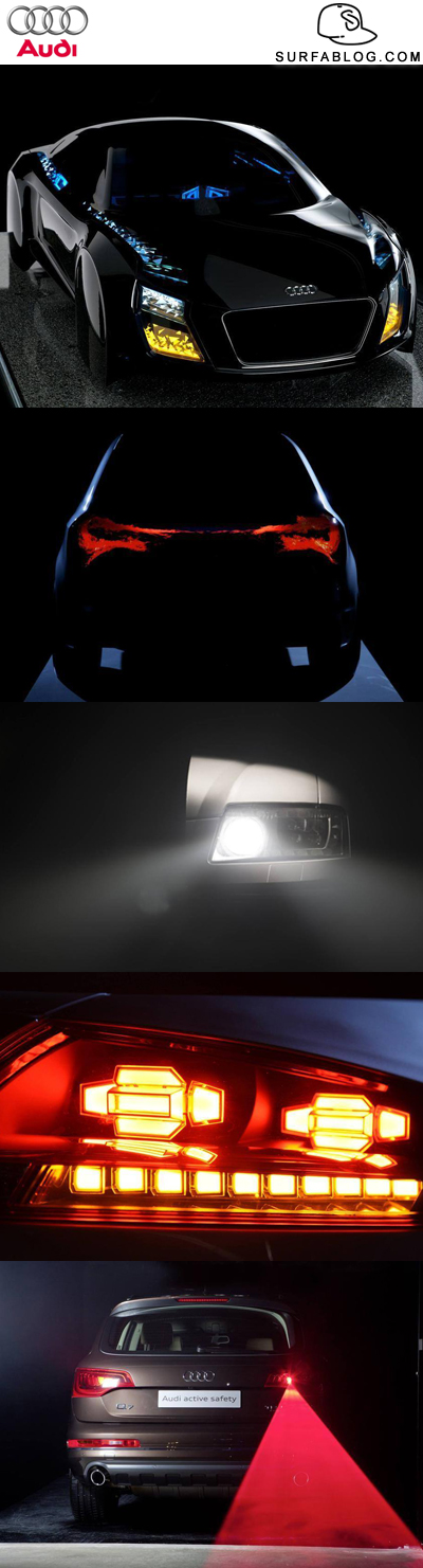 Al CES 2013, Audi ha presentato quelli che sostiene potranno essere i fari del futuro. Si chiamano "Matrix Beam" ed hanno un principio di funzionamento simile a quello delle luci di un albero di Natale. Il corpo luce del faro è composto da dei piccoli led divisi in gruppi, che l'elettronica di bordo può far accendere tutti insieme o singolarmente. Il meccanismo consente di usare gli abbaglianti senza problemi, perchè se la telecamera anteriore individua la presenza di un veicolo in arrivo nella direzione opposta, li spegne in automatico. Non è un semplice abbassamento automatico delle luci, ma in realtà spegnerebbe solo i Led pericolosi, senza perdere così la profondità di visibilità garantita dai segmenti accesi. Infine, Audi, ha presentato un'altra soluzione d'aiuto quando le normali luci retronebbia non fossero abbastanza utili. La casa automobilistica ha ideato di proiettare attraverso un laser, a qualche metro di distanza dalla coda della vettura, una linea rossa sulla strada, per indicare una sorta di stop da non superare per mantenere la distanza di sicurezza. In caso di pioggia o di nebbia, il laser formerebbe un fascio di luce che disegnerebbe sulla strada un triangolo d'emergenza.