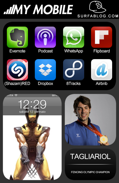 Eccovi il post numero 13 di My Mobile, la nuova categoria del SURFAblog, in cui si vedono le 8 applicazioni più usate/preferite e lo sfondo del telefono di ogni personaggio. Oggi troviamo Matteo Tagliariol.
