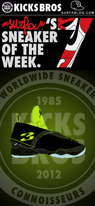 Surfablog X KicksBros - Sneaker Of The Week 01: Ci siamo! Finalmente KicksBros è online! Per me è un grande piacere curare su questo sito una rubrica sulla mia sneaker preferita della settimana. Il logo della categoria è stato realizzato da Federico MH e rappresenta al 100% l’idea di questa iniziativa; come potete notare c’è il numero 7 che indica i giorni della settimana, ma che al tempo stesso mostra i tratti della Air Jordan I, a significare la numero uno delle scarpe dei 7 giorni passati. Come primo appuntamento per la “Sneaker Of The Week”, non potevo non scegliere la Air Jordan XX8. La 28esima creazione di Jordan è stata presentata Venerdì scorso a Houston in occasione dell’NBA All-Star Game 2013 ed è stata venduta, per l’evento di lancio, con un package speciale in legno. La Air Jordan XX8 è stata realizzata dal leggendario designer Tinker Hatfield e dal responsabile del marchio, Josh Heard. Il prezzo di vendita è di $250.
