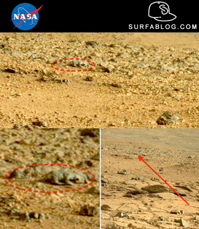 Vi ricordate di Curiosity? E' il robot lanciato dalla Nasa atterrato su Marte nell'Agosto 2012 per scoprire tracce chimiche e di minerali sul Pianeta rosso (per saperne di più clicca qui e clicca qui). E' di ieri la notizia che Curiosity, ha fotografato una creatura simile ad una lucertola mimetizzata tra le rocce della superficie di Marte. Il dubbio rimane, è un essere vivente o semplicemente una pietra?