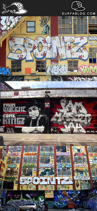 5 Pointz è un luogo di culto, sia per la quantità spropositata di opere che contiene, sia perché al suo interno sono stati girati alcuni video dei maggiori artisti hip hop ed r&b di New York City: Doug E. Fresh, Kurtis Blow, Grandmaster Kaz, Mobb Deep, Rahzel, Dj JS-1, Boot Camp Clik, Joan Jett e Joss Stone. Nonostante i primi graffiti della storia siano stati realizzati a Filadelfia negli anni '60, il writing si è sviluppato a New York negli anni '70 e se siete appassionati di quest'arte dell'hip hop, non potete non conoscere 5 nomi fondamentali dei pionieri New Yorkesi di questa disciplina. Primo tra tutti, c'è da menzionare TAKI 183, un writer dei primi anni '70, che ha aperto la strada e sviluppato l'aerosol art a NYC, introducendo l'uso delle tag. Segue Stay High 149 aka Voice of the Ghetto, in attività dal 1970 al 1975, considerato una superstar del mondo dei graffiti e la sua tag era una delle più famose della città. Al terzo posto c'è Phase 2, fondatore della crew Omega Zulu Maasai e creatore del Bubble Style, caratterizzato da lettere che ricordano delle bolle. Al quarto posto c'è Super Kool 223, che oltre ad essere stato uno dei primi tagger del Bronx è stato il primo a realizzare un vero e proprio graffito. Per concludere va nominato Tracy 168, diventato famoso per essere stato il primo writer a sintetizzare i caratteri con i nomi.