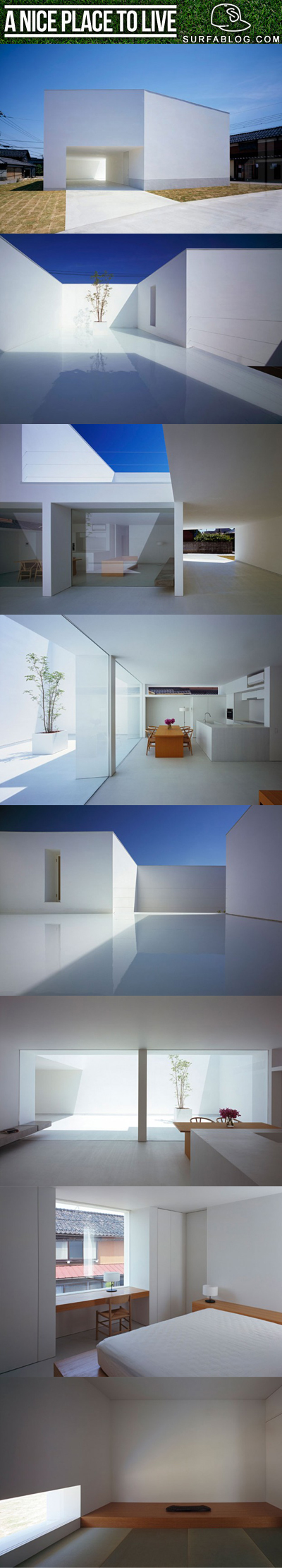 White Cave House: realizzata da Takuro Yamamoto si trova a Kanazawa City in Giappone. Nonostante sia una zona piena di nevicate, la casa presenta molti spazi esterni, con una terrazza ed un cortile. Gli spazi all'aperto contribuiscono a portare la luce nel resto dell'abitazione, il che significa una mancanza totale di finestre.