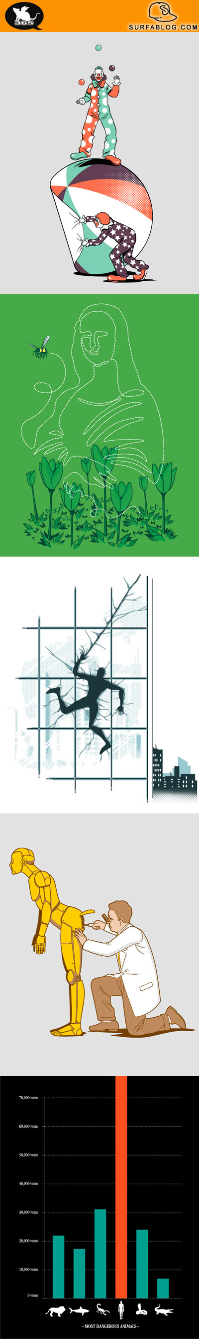 Chow Hon Lam aka FlyingMouse365 è un illustratore molto talentuoso, diventato celebre sul web per merito delle sue illustrazioni fantastiche. Dopo Glenn Jones (per saperne di più clicca qui), Banksy (per saperne di più clicca qui) e OakOak (per saperne di più clicca qui), eccovi una nuova categoria del blog dedicata ad un singolo artista. Ogni settimana pubblicherò un post con 5 sue grafiche. Oggi il diciottesimo appuntamento: Illuson Clowns, I Love Art, Becareful When You Swin, Psychological Barrier, Most Dangerous Animals.