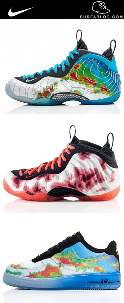 Nike ha realizzato un nuovo pack da collezione composto da 2 Nike Foamposite One e da 1 Air Force 1. Le 3 sneakers mostrano una pattern composta dall'evoluzione meteorologica del clima. Le 2 scarpe blu saranno in vendita dal 30 Agosto, mentre la rossa dal 28 Settembre.