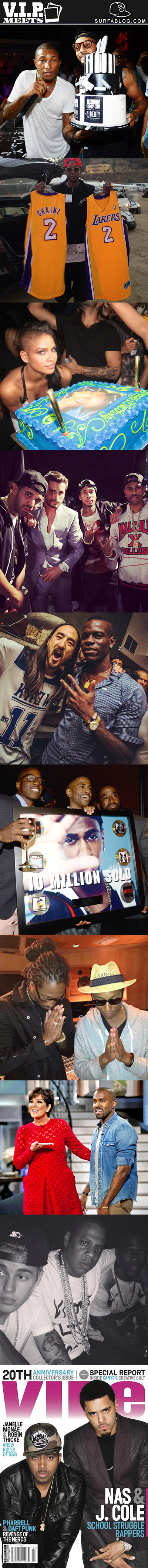 Nuovo VIP Meets oggi! Nella prima foto: Pharrell & Swizz Beatz festeggiano a Las Vegas i 10 anni di BillionaireBoysClub. Nella seconda: 2 Chainz sfoggia le sue jerseys dei Lakers. Nella terza: Cassie festeggia i suoi 27 anni al W.I.P. di New York. Nella quarta: Drake, Scott Disick, Tyga e Big Sean al compleanno di Kylie Jenner (sorella di Kim Kardashian). Nella quinta: Steve Aoki & Balotelli a Mykonos. Nella sesta: Big Sean festeggia al Moët Rosé Lounge di Hollywood i 10 milioni di singoli venduti. Nella settima: Future & Pharrell in studio che ringraziano per l'opportunità che hanno di fare musica. Nell'ottava: Kanye West insieme a Kris Jenner per il Kris Jenner Show. Nella nona: Justin Bieber, Jay-Z e Kevin Hart al "Last Legend Show. Per concludere: Nas e J Cole sulla copertina di Vibe Magazine, per il 20esimo anniversario della rivista.