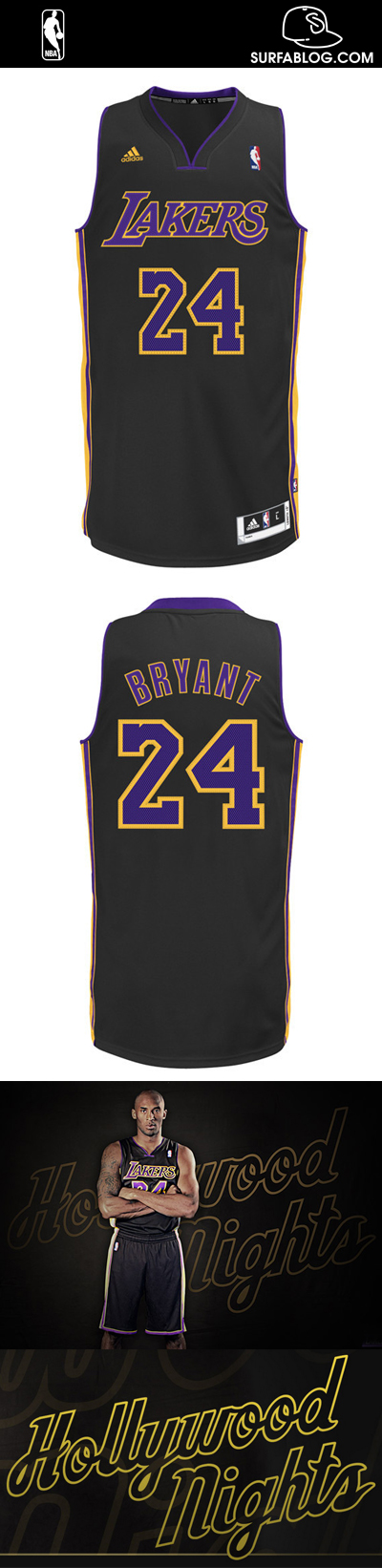 Si chiama "Hollywood Nights" ed è un'insolita divisa nera con la scritta viola e dettagli in oro. La maglia è stata presentata a fine Agosto attraverso un video su Instagram, ma è stata messa in vendita in questi giorni sul sito ufficiale della squadra. Inoltre i Lakers utilizzeranno anche una divisa bianca a maniche corte durante la partita di Natale contro i Miami Heat. Prezzo: 354.99 $.