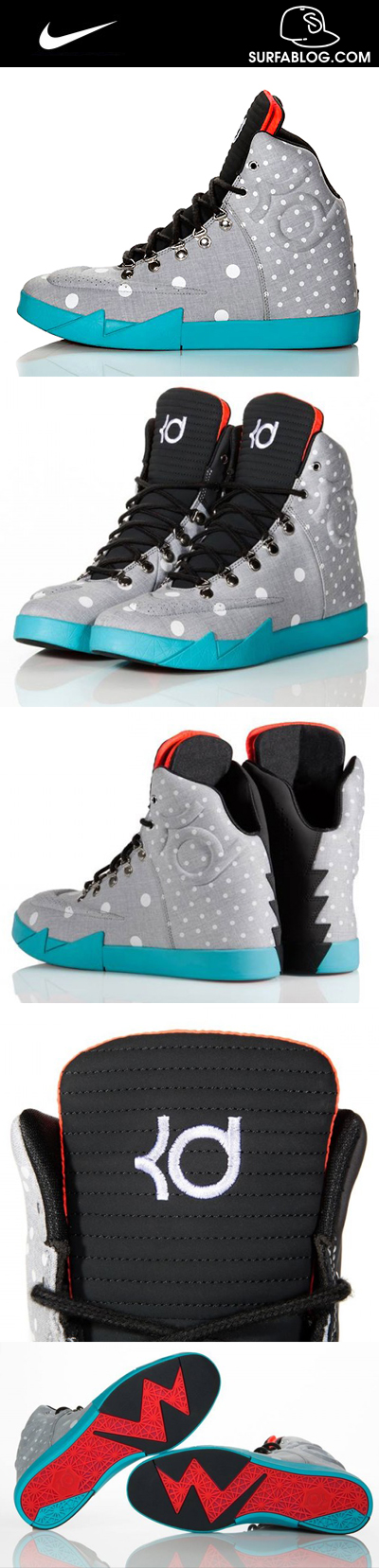 La scarpa dispone di una tela grigia con grandi pois bianchi sul fronte e piccoli pois sul retro. La Nike KD VI NSW Lifestyle Birthday sarà in vendita dal 14 Settembre nei migliori rivenditori Nike.