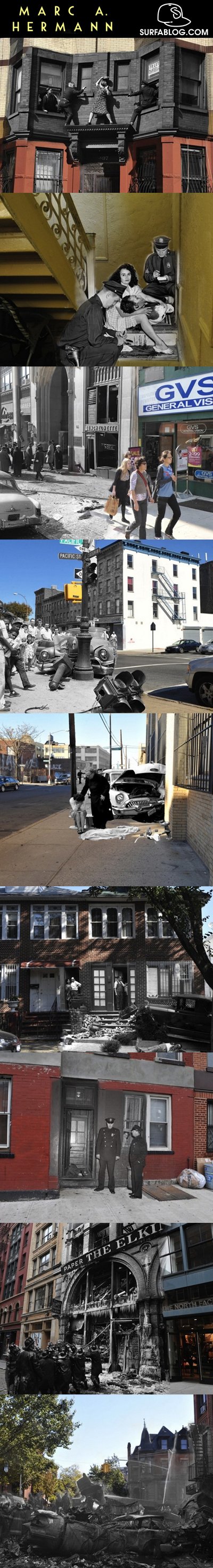 Marc ha aperto una finestra inquietante sui tragici eventi del passato a New York, mixando nella stessa foto il passato con il presente.