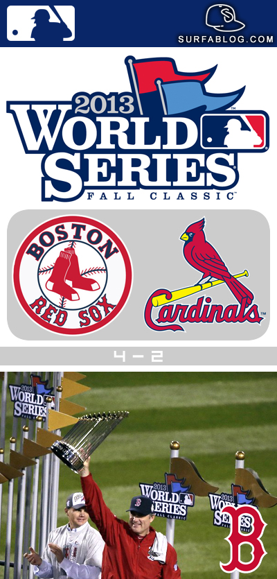 Negli ultimi 10 anni, questo è il terzo successo di Boston nelle World Series, dopo quelli del 2004 e del 2007, ma davanti al proprio pubblico allo stadio Fenway Park è il primo dal 1918. La vittoria è stata dedicata alle vitteme dell'attentato alla maratona dello scorso 15 Aprile. David Ortiz è l'MPV delle finali ed ha dichiarato "Boston questo è per te. Ve lo meritate. Questo è per voi e per tutte le famiglie che hanno sofferto".