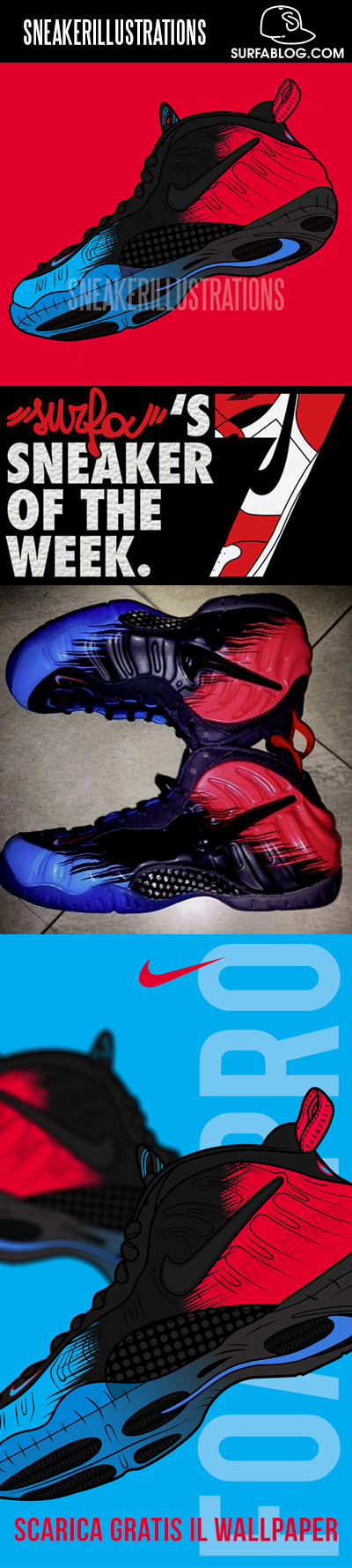Questa volta l'attenzione del web si è focalizzata sulla Nike Air Foramposite Pro Red/Black/Blue, che è la seconda Foamposite ad essere eletta scarpa della settimana (per saperne di più clicca qui). Questo è un modello che Nike sta riproponendo in varie colorazioni ed infatti nell'ultimo periodo le due più celebri sono state la Weatherman e la Thermal Map. Visti i colori rosso, nero e blu della Foamposite di oggi, molti l'hanno soprannominata "Spider-Man". Attualmente non è stata comunicata nè la data d'uscita nè il prezzo della sneaker, ma verrà rilasciato a breve dal brand.