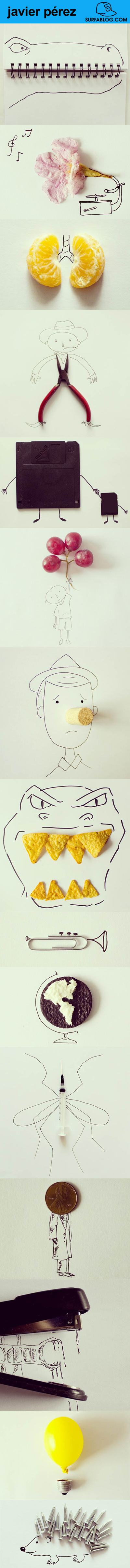 L'artista incorpora gli oggetti quotidiani ai suoi disegni. Wow!