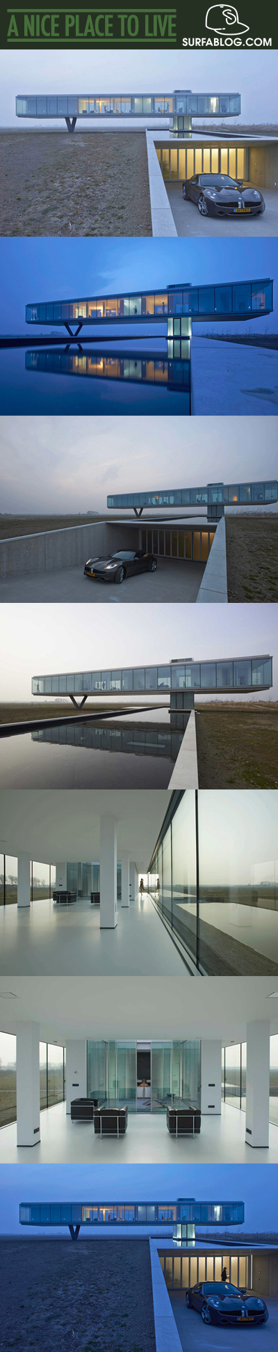 A realizzarla è Paul de Ruiter. La casa ha un clima confortevole durante tutte le stagioni ed è molto efficiente a livello di risparmio energetico. La villa è costituita da 2 volumi quadrati sovrapposti: uno interrato ed uno galleggiante sopra la terra. La parte superiore è stata progettata in vetro ed è sostenuta da un telaio in acciaio a V. Per recarsi all'abitazione c'è una strada deserta che attraversa un cammino senza centri abitati.