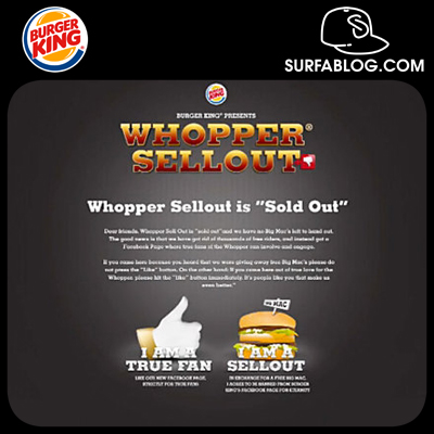 Dopo aver raggiunto i 38.000 like, sulla pagina sono comparsi numerosi commenti negativi da parte degli amanti del Mc Donald's e, stufi di questi comportamenti, gli amministratori hanno ideato l'applicazione "Whopper Sellout", mettendo i suoi utenti di fronte ad una scelta: "I am a true fan" e quindi rimango iscritto alla pagina, oppure "I am a sellout" ed in cambio di un Big Mac scelgo di essere bannato per sempre. Dopo una settimana di attività, l'app è stata rimossa e la pagina ha perso quasi 30.000 utenti, ma ottenendo un engagement 5 volte superiore rispetto a prima dell'operazione.