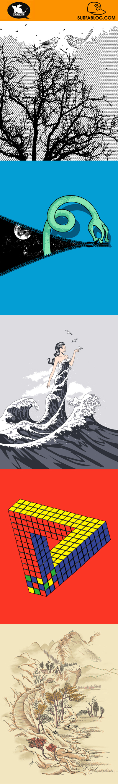 Dopo Glenn Jones (per saperne di più clicca qui), Banksy (per saperne di più clicca qui) e OakOak (per saperne di più clicca qui), eccovi una nuova categoria del blog dedicata ad un singolo artista. Ogni settimana pubblicherò un post con 5 sue grafiche. Oggi un nuovo appuntamento: My New Friend; Zipped; Wave Dress; Magic Cube Always Confusing; Feng Shui Dragon.