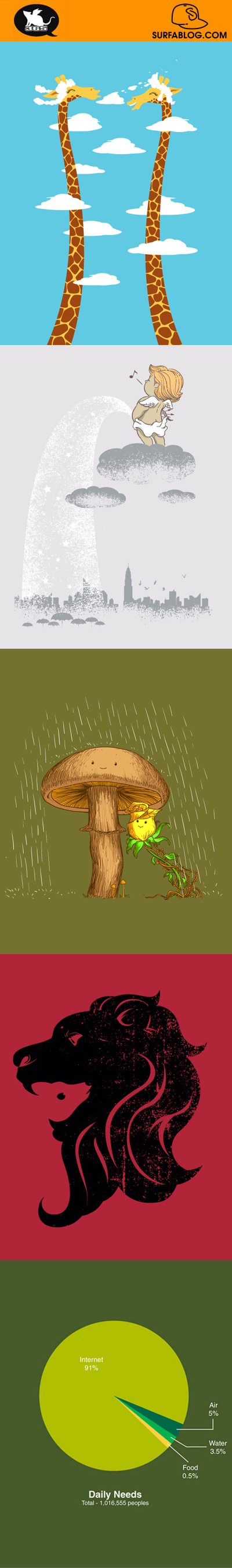 Dopo Glenn Jones (per saperne di più clicca qui), Banksy (per saperne di più clicca qui) e OakOak (per saperne di più clicca qui), eccovi una nuova categoria del blog dedicata ad un singolo artista. Ogni settimana pubblicherò un post con 5 sue grafiche. Oggi un nuovo appuntamento: Coudy Day; Natural Umbrella; I Got A Deer; Rainy Day; Daily Needs.