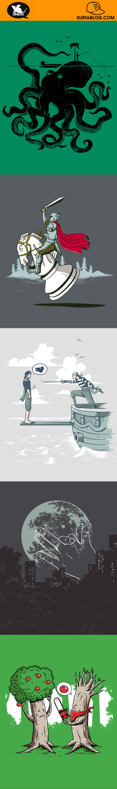 Dopo Glenn Jones (per saperne di più clicca qui), Banksy (per saperne di più clicca qui) e OakOak (per saperne di più clicca qui), eccovi una nuova categoria del blog dedicata ad un singolo artista. Ogni settimana pubblicherò un post con 5 sue grafiche. Oggi un nuovo appuntamento: Island Trap; Knight N Knight; Final Request; Full Moon Comedy; Robber.