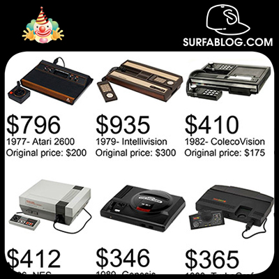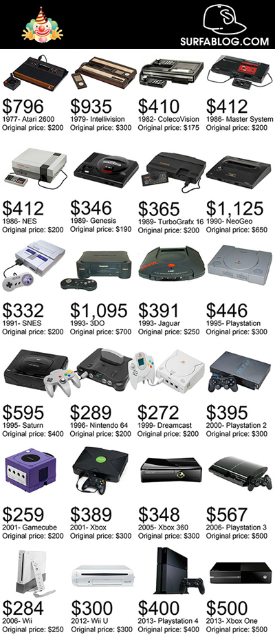 La particolarità di questo post è anche il confronto tra il loro prezzo originale e quanto costerebbero oggi. A colpire l'attenzione è il fatto che la console con il costo originale più alto era la NeoGeo del 1990 venduta a 650 $. La più economica invece è la Genesis del 1989.