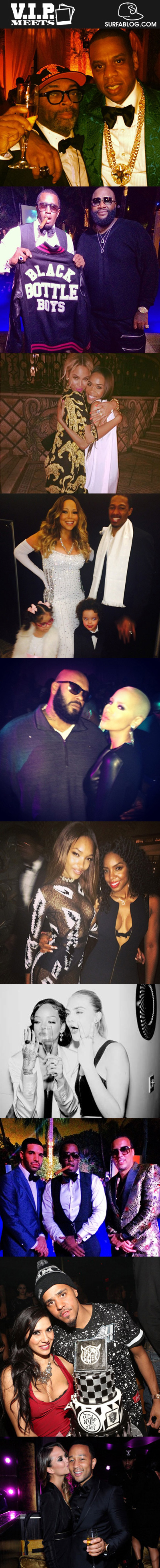 Nella seconda: Diddy & Rick Ross. Nella terza: Beyoncè & Michelle. Nella quarta: Mariah Carey, Nick Cannon ed i loro figli. Nella quinta: Suge Knight & Amber Rose. Nella sesta: Jourdan Dunn & Kelly Rowland. Nella settima: Rihanna & Cara. Nell'ottava: Diddy, Drake e French Montana. Nella nona: J. Cole festeggia il 2014 con una torta dedicata al suo disco "Born Sinner". Per concludere: Chrissy Teigen e John Legend.