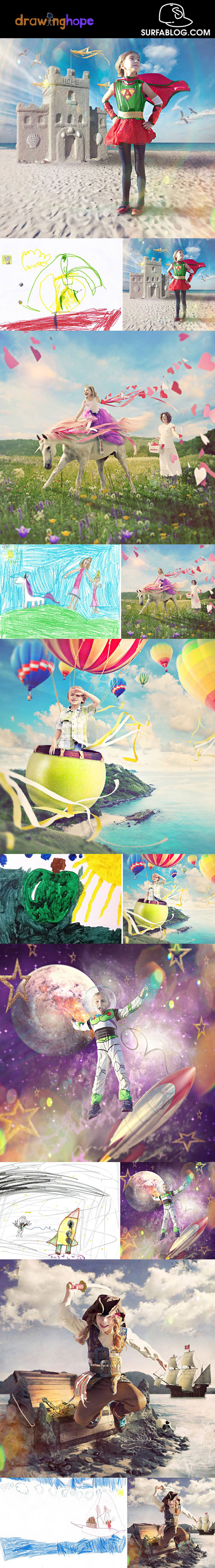 Shawn Va Daele: è un fotografo canadese autore del progetto “Drawing Hope”, in cui realizza delle illustrazioni che rappresentano i sogni dei bambini in gravi condizioni di salute, usando i loro disegni come linea guida.