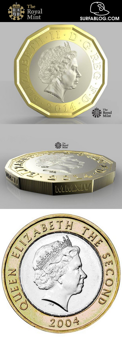 Il nuovo “Pound” si basa sulla forma dell’antico “threepenny bit”, la prima moneta inglese con l’effige di Elisabetta II. La nuova sterlina, che inizierà a circolare nel 2017, ha le stesse dimensioni di quella attuale (in basso nell’immagine) e sarà composta da 2 metalli differenti. Il portavoce del tesoro ha dichiarato “Dopo 30 anni di onorato servizio è tempo di mandare in pensione la nostra moneta da una sterlina, sostituendola con una tra le più sicure al mondo”.