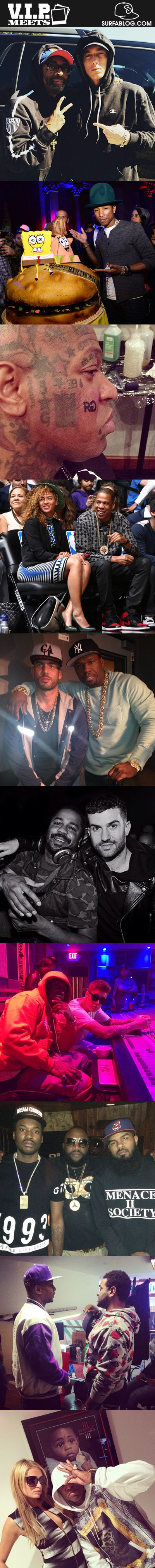 Nella seconda: Pharrell e la torta per il suo 41esimo compleanno. Nella terza: Birdman mostra il suo nuovo “Rich Gang” tattoo. Nella quarta: Beyoncé e Jay-Z a bordo campo per il match Brooklyn Nets Vs Houston Rockets. Nella quinta: Dj Drama e 50 Cent negli studi Shade45. Nella sesta: Just Blaze ed A-Trak in un club. Nella settima: Birdman e Justin Bieber in studio; a seguito dell’incontro il CEO di Cash Money ha regalato al giovane cantante una Bugatti. Nell’ottava: Meek Mill, Rick Ross e Stalley. Nella nona: Cam’Ron e Jim Jones. Per concludere: Paris Hilton e Birdman in studio.