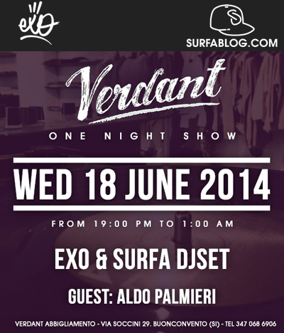 DOMANI SERA EXO + SURFA DJ SET @ VERDANT ABBIGLIAMENTO (BUONCONVENTO)