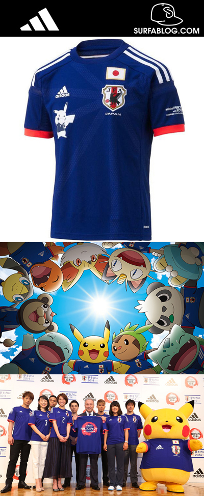 La squadra allenata da Alberto Zaccheroni avrà sulla maglia, sotto lo sponsor tecnico Adidas, una stampa di Pikachu. Il pokemon infatti è la mascotte della federcalcio nipponica per la spedizione in Brasile. Una mossa di marketing geniale che ha reso la divisa un oggetto da collezione che andrà a ruba tra gli appassionati dei Pokemon.