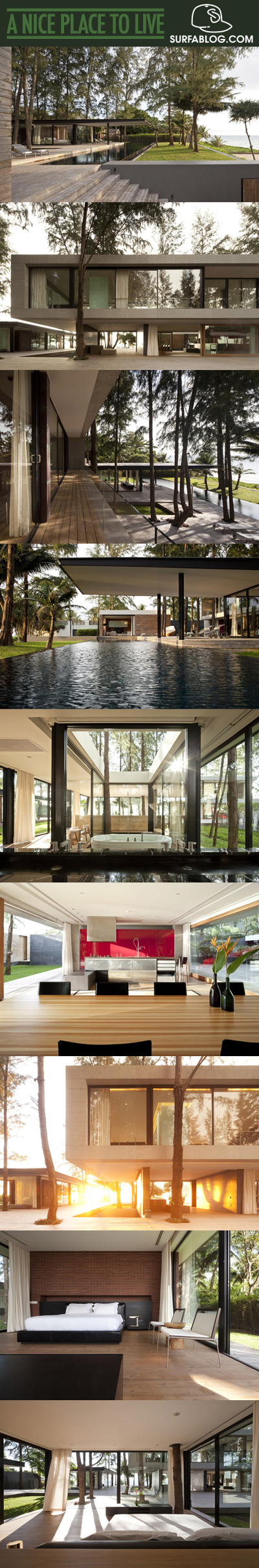 La casa si trova in Tailandia ed è stata progettata dai Duangrit Bunnag Architects. I materiali che la compongono spaziano dalle pietre naturali, al legno, ai mattoni, al vetro. Wow!