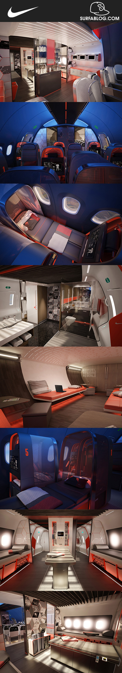 Per questo motivo Nike e Teague hanno realizzato il concept di un jet privato progettato appositamente per far viaggiare una squadra di pallacanestro. Vedremo se l’idea diventerà realtà.
