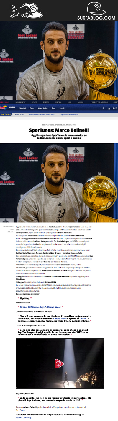 Ringrazio Marco Belinelli per la disponibilità. Vi aspetto al prossimo appuntamento di SporTunes su RedBull.Com.