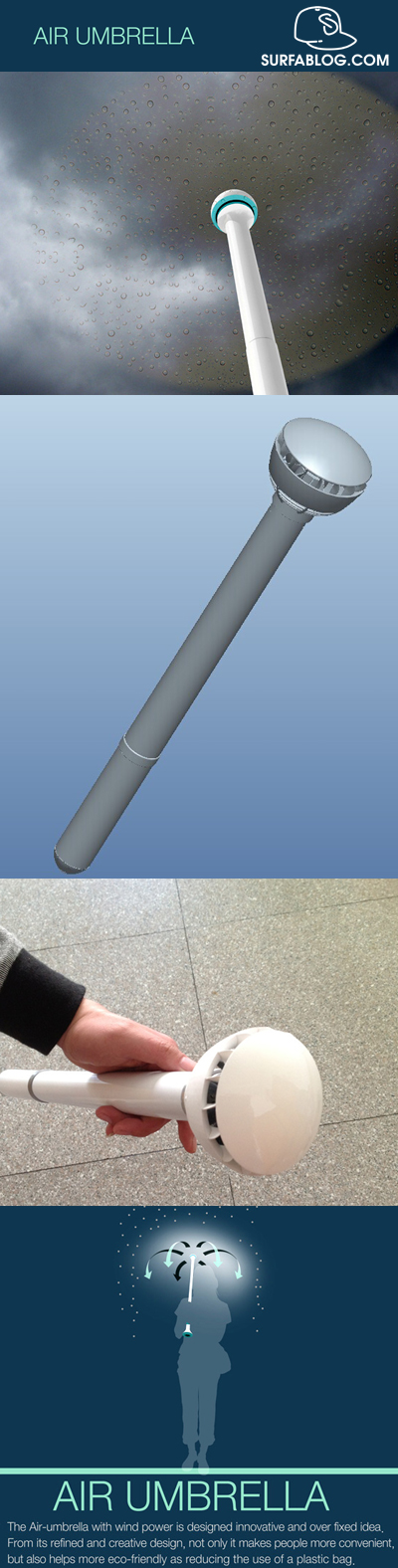 Si tratta di un bastone la cui punta emette un forte getto d’aria che ripara la persona della pioggia. L’ombrello non ha alcuna copertura e sarà disponibile in tre modelli con tre diverse misure. Le consegne sono previste per Dicembre 2015 ed ognuno costerà 100 €.