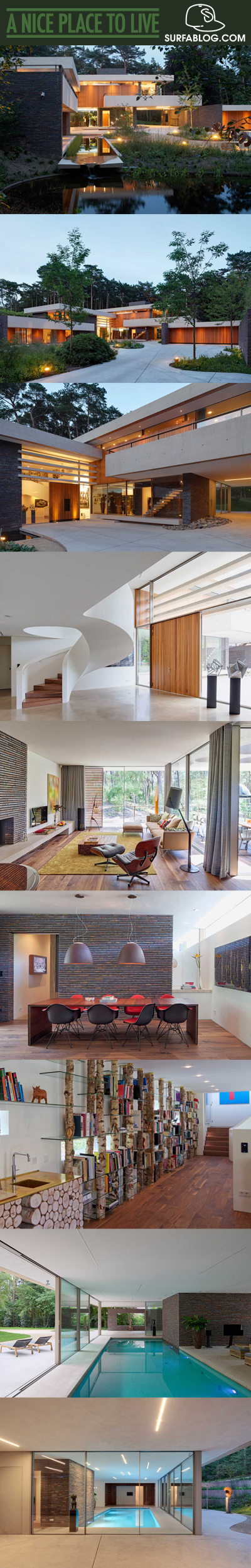 A realizzare questa fantastica casa è il gruppo di architetti Hilberinkbosch. Al primo piano sono presenti il salotto, la cucina, l’ufficio, la camera da letto principale e la libreria. La stanza per gli ospiti e la piscina interna invece si trovano a ridosso della duna, da qui il nome della villa.