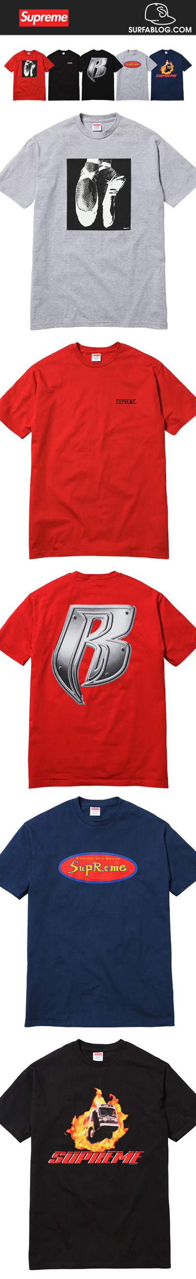 Le tees sono disponibili da oggi negli store e sul sito Supreme.