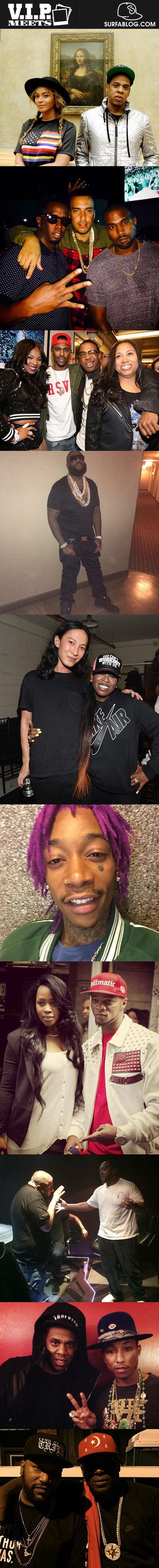 Nella seconda: Diddy, French Montana e Kanye West all’Hollywood Bowl. Nella terza: Ashanti, Big Sean, Ja Rule e Aika Atkins al concerto per i 30 anni della Def Jam. Nella quarta: Rick Ross con 100 libbre in meno (ovvero 45 kg). Nella quinta: Alexander Wang e Missy Elliott alla presentazione della Wang x H&M Collection. Nella sesta: Wiz Khalifa mostra il suo nuovo colore di capelli dopo il divorzio. Nella settima: Remy Ma e Papoose a New York. Nell’ottava: Dj Khaled e Timbaland in studio. Nella nona: Jay-Z e Pharrell nel backstage del concerto di Parigi di quest’ultimo. Per concludere: Bun B e Jay Electronica insieme a New York.