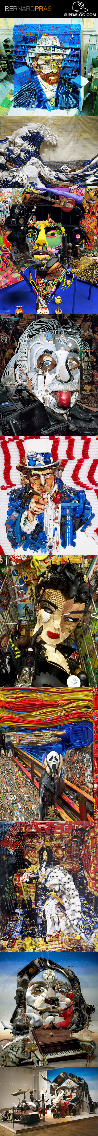 L’artista che si cela dietro queste creazioni, che prendono vita a seconda della prospettiva da cui vengono osservate, è Bernard Pras. Quest’ultimo utilizza ogni tipo di materiale per le sue opere: bottiglie vuote, pillole, immondizia, giocattoli, vestiti ed altro ancora.