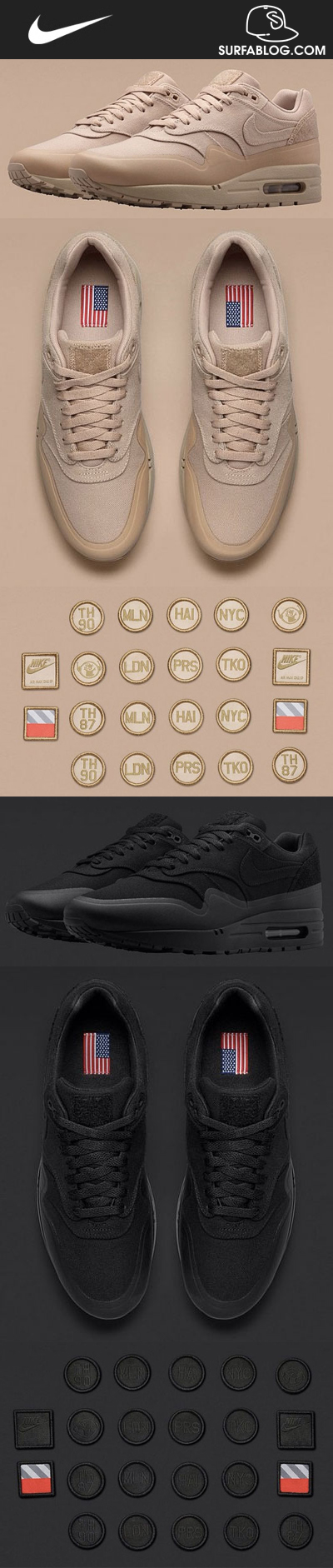 E’ composto da un’Air Max 1 in due colori ispirati a quelli militari: beige e nero. Ogni sneaker è venduta con 22 patch che fanno riferimento ai posti ed alle persone che hanno permesso lo sviluppo di questo modello: TKO (Tokyo), LDN (Londra), MLN (Milano), NYC (New York City), PRS (Parigi), HAI (Shanghai), TH87 e TH90 (entrambe riguardano Tinker Hatfiled). Il “Patch” Pack sarà in vendita dal 26 Febbraio nei NikeLab.