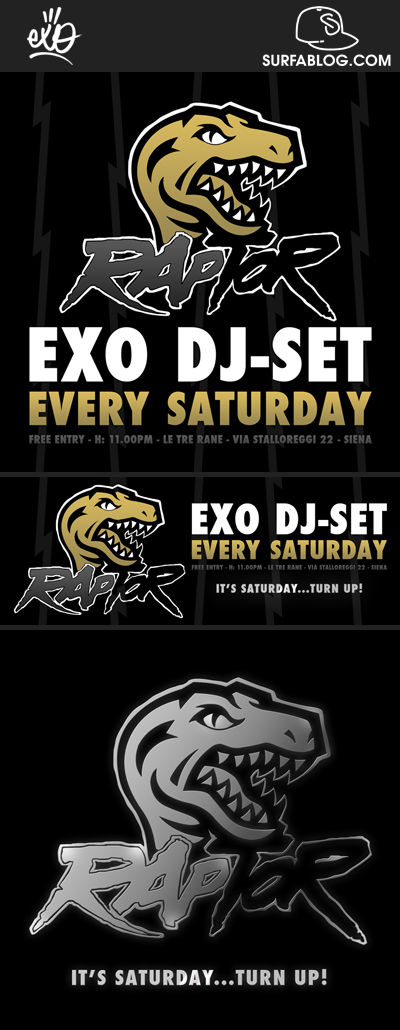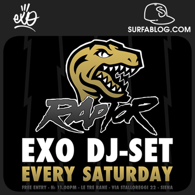 Oggi Exo inaugura i dj set esclusivamente Hip-Hop del sabato sera di Siena. Il party si chiama Raptor e si svolge a 10 metri sotto terra nel locale Le Tre Rane.
