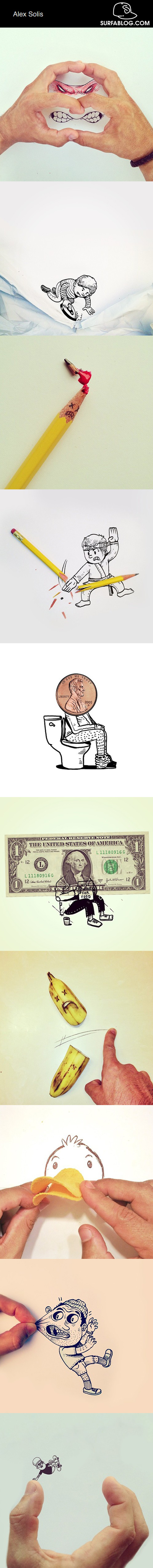 Oggi eccovi un nuovo progetto grafico di Alex chiamato “Misc Art”, in cui l’artista mixa i suoi disegni ad alcuni oggetti reali.