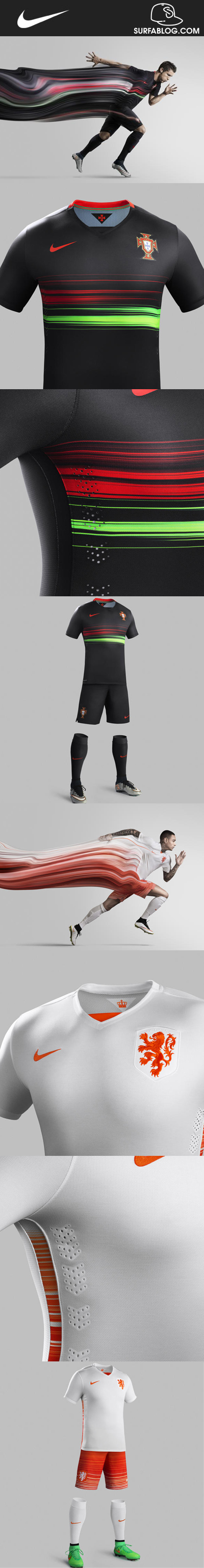 La nuova maglia away del Portogallo segna il ritorno di uno stile deciso caratterizzato dal colore nero predominante. La maglia ha una nuova banda sul petto: una grafica che esprime la rapidità, composta da lampi disposti a raggiera di color verde elettrico e rosso acceso, che rispecchiano lo stile frenetico del calcio portoghese.