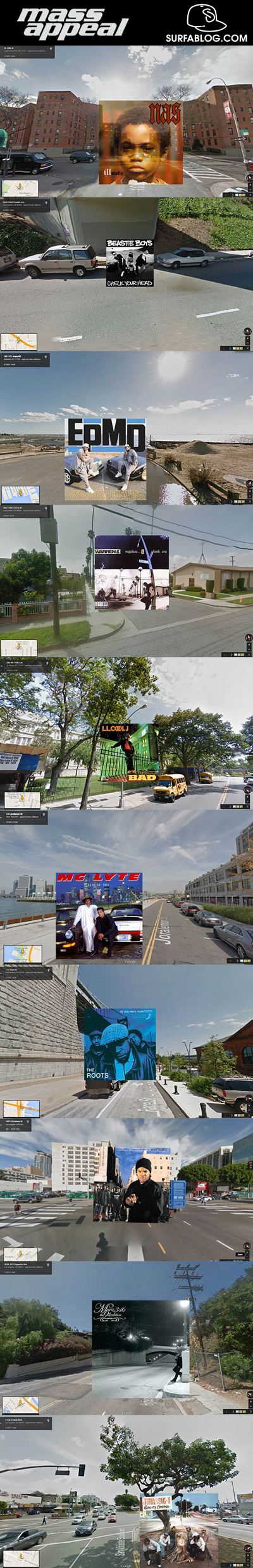 A dare vita a quest’idea è il sito Mass Appeal che ha sovrapposto le copertine degli album ai loro luoghi originali. In ordine:
