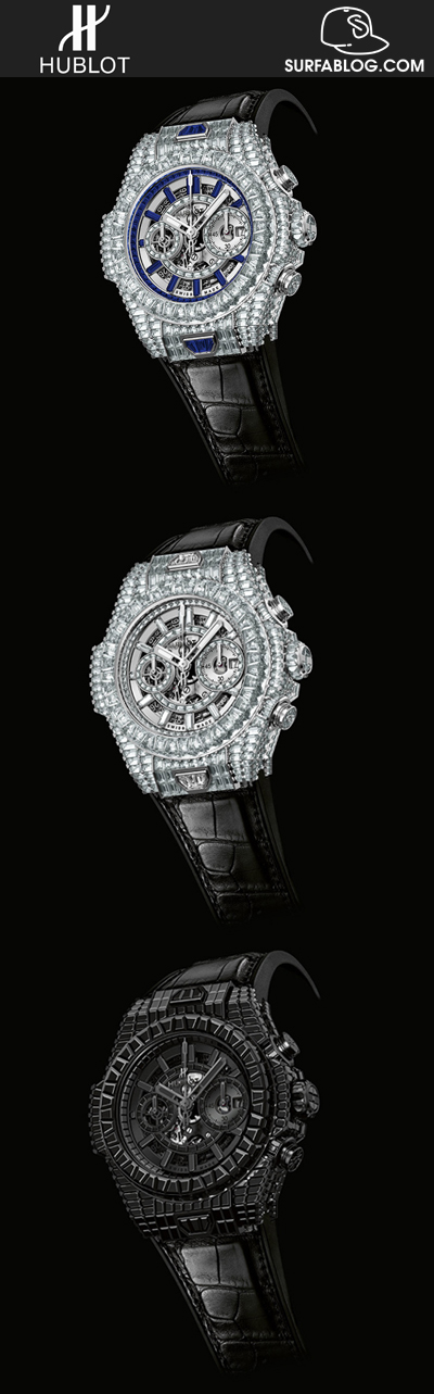 Il marchio ha realizzato tre Big Bang stracolmi di diamanti dal prezzo di 1 milione di $ l’uno. La produzione di questi orologi è limitata a soli dieci pezzi e per realizzarne uno solo ci sono volute 750 ore di lavoro.