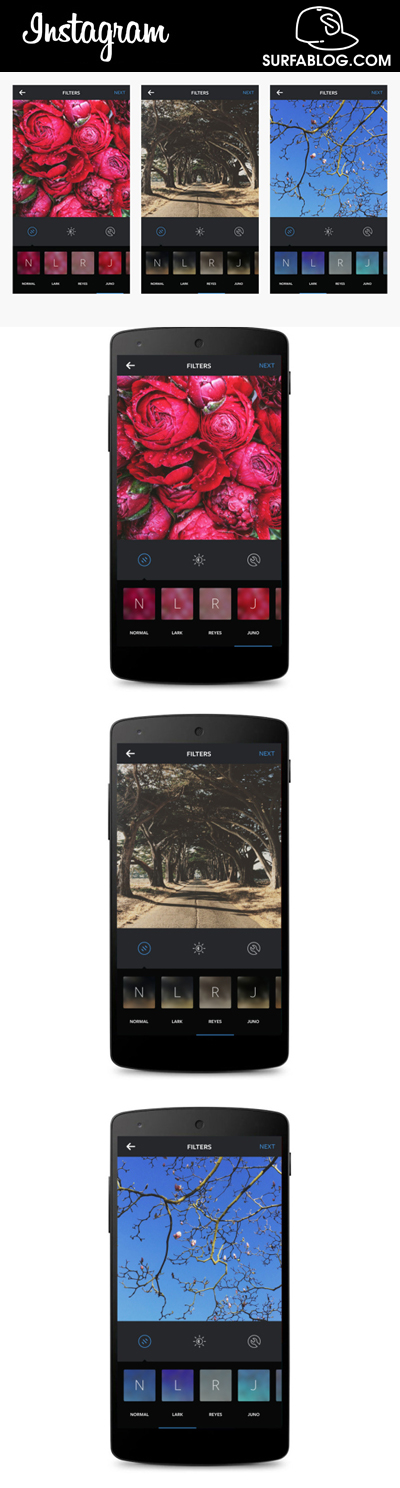 La prima riguarda tre nuovi filtri per l’estate: Lark, Reyes e Juno. Il primo riduce la saturazione delle tinte calde, in particolare dei rossi; il secondo aggiunge un effetto invecchiato all’immagine, rendendo i colori meno saturi; il terzo fa virare verso torni di verde le tinte più fredde, rendendo più brillanti i colori caldi.
