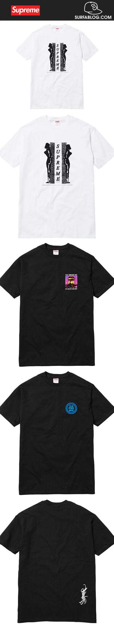Le tees sono disponibili da oggi negli store e sul sito Supreme.