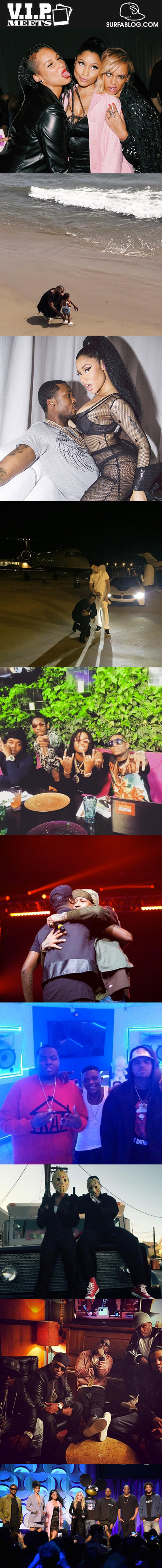 Nella seconda: Kanye West e sua figlia al mare. Nella terza: la nuova coppia del Rap Meek Mill e Nicki Minaj. Nella quarta: Diddy e French Montana in aeroporto. Nella quinta: Migos e Soulja Boy a Mosca. Nella sesta: Meek Mill ed Allen Iverson durante il live del rapper. Nella settima: Sean Kingston, Lil Boosie e Chris Brown in studio. Nell’ottava: Dej Loaf e Game nel backstage del loro nuovo video. Nella nona: la G Unit al completo nel backstage di Jimmy Fallon. Per concludere: Usher, Rihanna, Nicki Minaj, Madonna, Deadmau5, Kanye West, Jay Z e J. Cole alla presentazione di TIDAL.