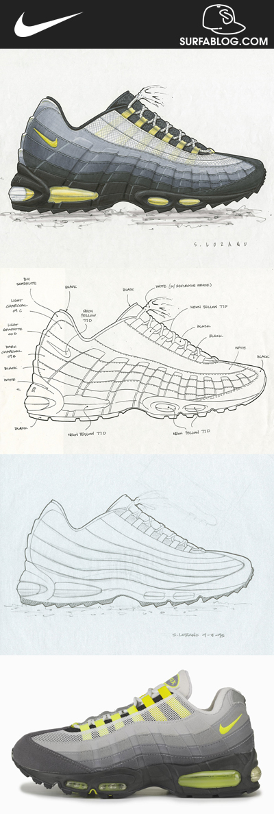 Ad idearla è stato Sergio Lozano, che ha guidato il suo team attraverso innumerevoli revisioni, fino alla produzione della AM95. A tal proposito il designer ha affermato “La prima revisione concettuale dell’Air Max 96 non aveva riscosso successo di fronte al board, visto che alcuni pensavano che fosse buona, mentre ad altri non piaceva affatto. Una volta portata a termine la mia visione, alcuni grandi campioni hanno sostenuto l’idea e senza di essi la scarpa non sarebbe mai stata realizzata”.