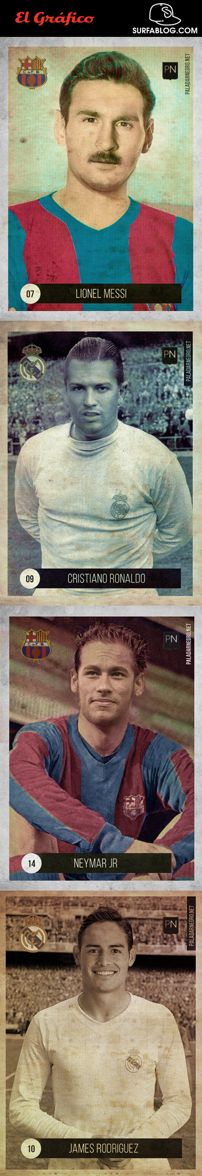 La rivista ha creato delle figurine dei calciatori, con alcuni degli attaccanti più forti di oggi, con il look ed il design degli anni ’40. Ecco quindi come sarebbero stati Messi, Ronaldo, Neymar e Hernandez tanti anni fa.